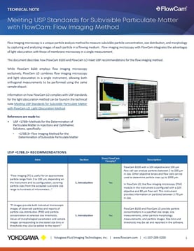 This document describes how FlowCam 8100 and FlowCam LO meet USP recommendations for the flow imaging method.