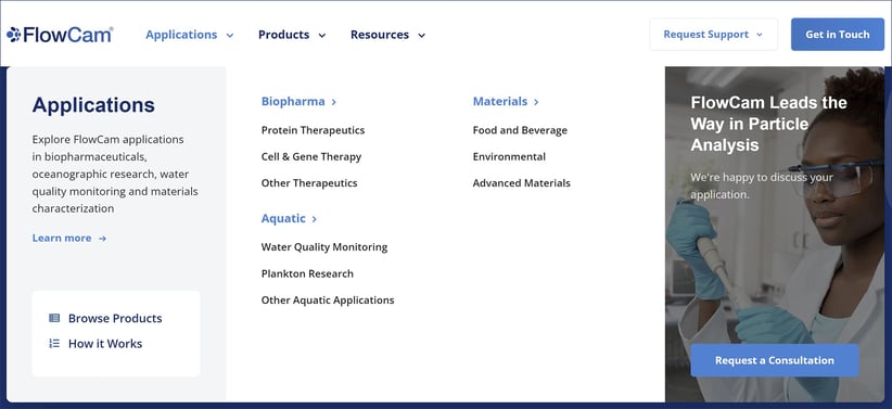 The FlowCam Products page now offers a dynamic experience allowing you to search and sort by application and product type.