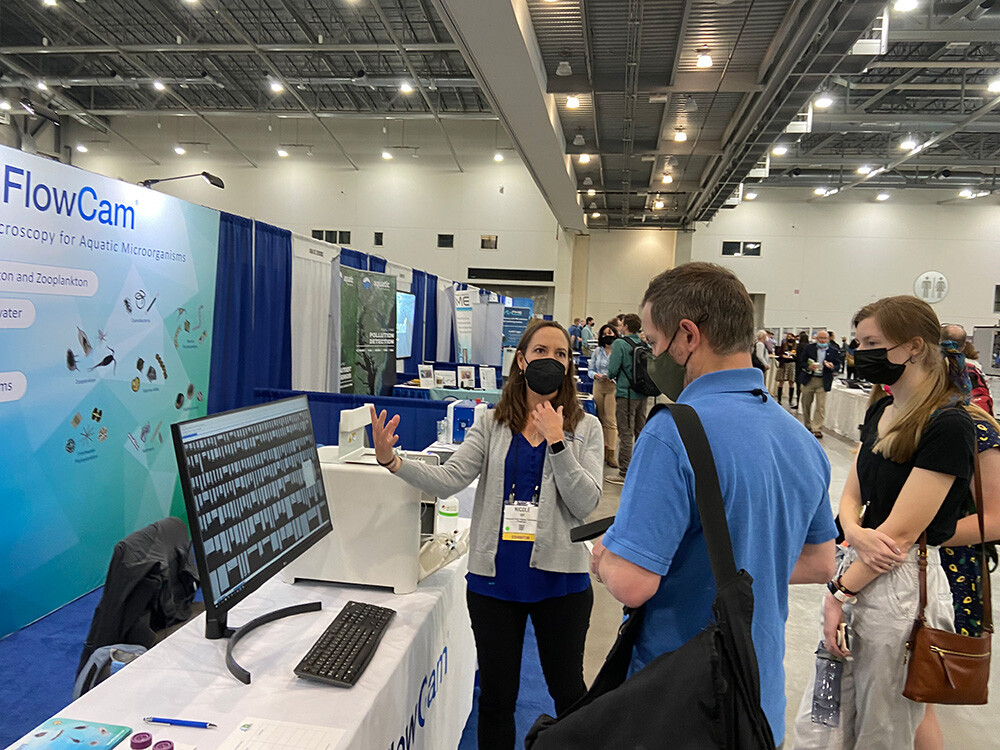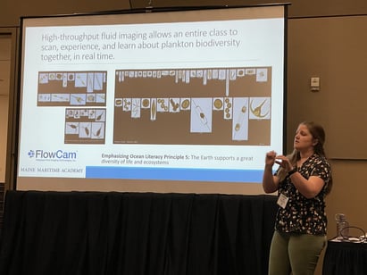 In addition to demonstrating FlowCam and VisualSpreadsheet in the exhibit hall, our team hosted training sessions for current FlowCam users and presented FlowCam data at scientific and poster sessions. We also had the chance to attend a variety of presentations from other scientists, showcasing the latest freshwater and marine research from around the globe. Pictured here is Savannah Judge giving her presentation titled "Using FlowCam for Marine HAB Monitoring in the Field-Based Undergraduate Ocean Classroom”. Savannah's talk focused on integrating FlowCam into undergraduate-level curriculums, using recent FlowCam research grant recipient Maine Maritime Academy as a case study.