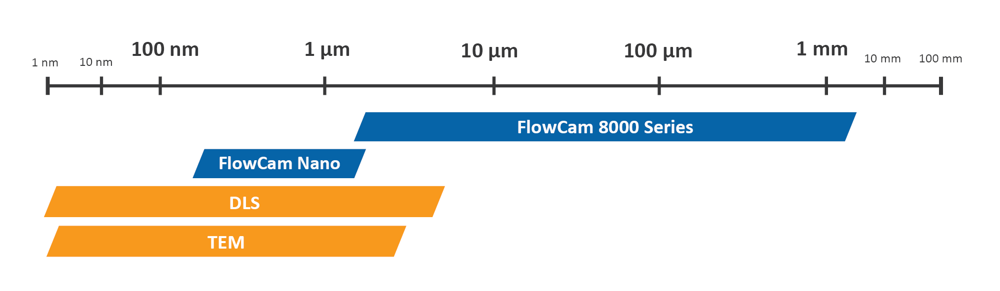 FlowCam Nano provides dynamic image analysis of submicron particles from 300 nm to 2 µm, bridging the gap between traditional flow imaging microscopy and other particle analysis techniques.